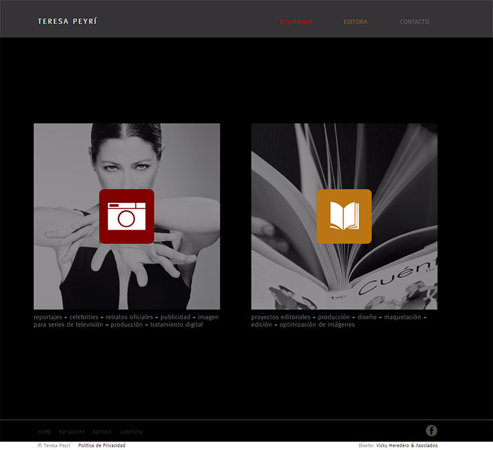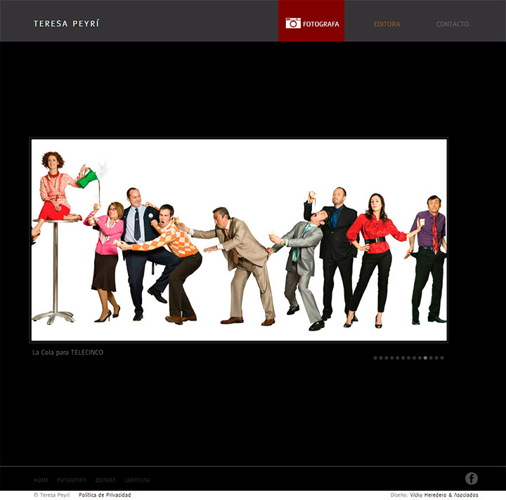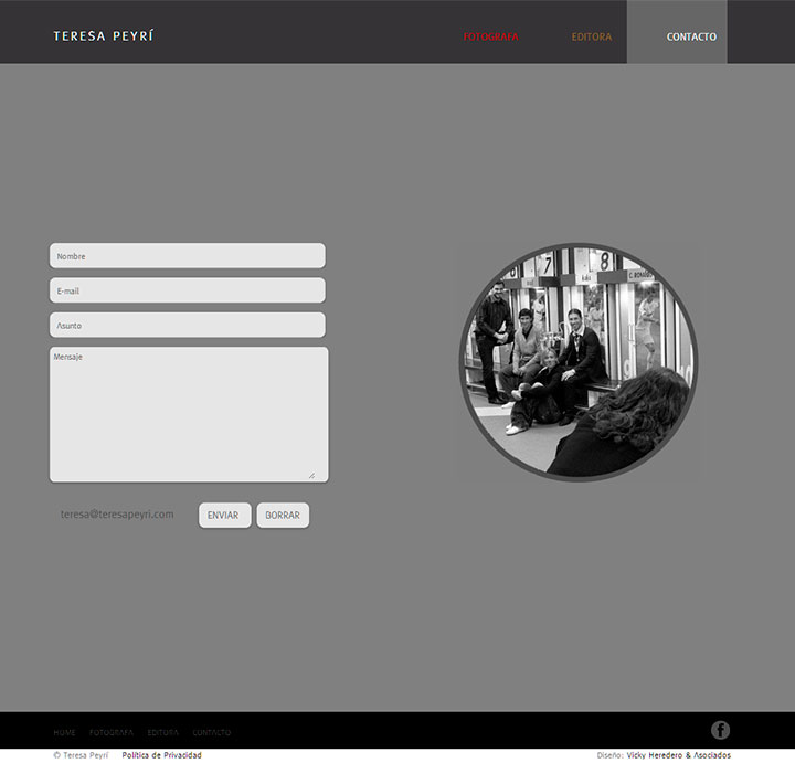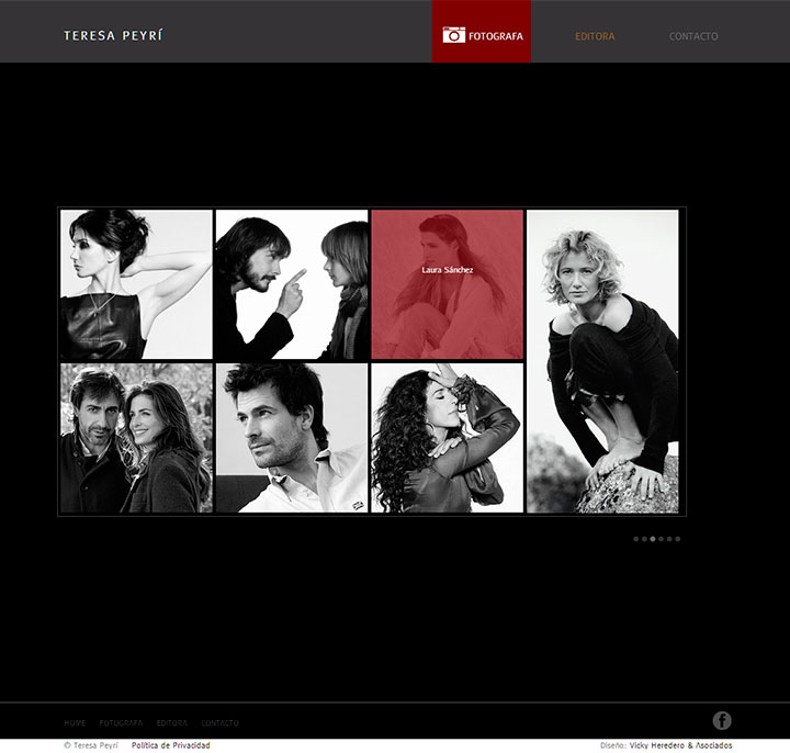 Web de la fotógrafa Teresa Peyrí, mostrando fotos de retratos, imágenes para cine y tv, junto con proyectos e ideas.